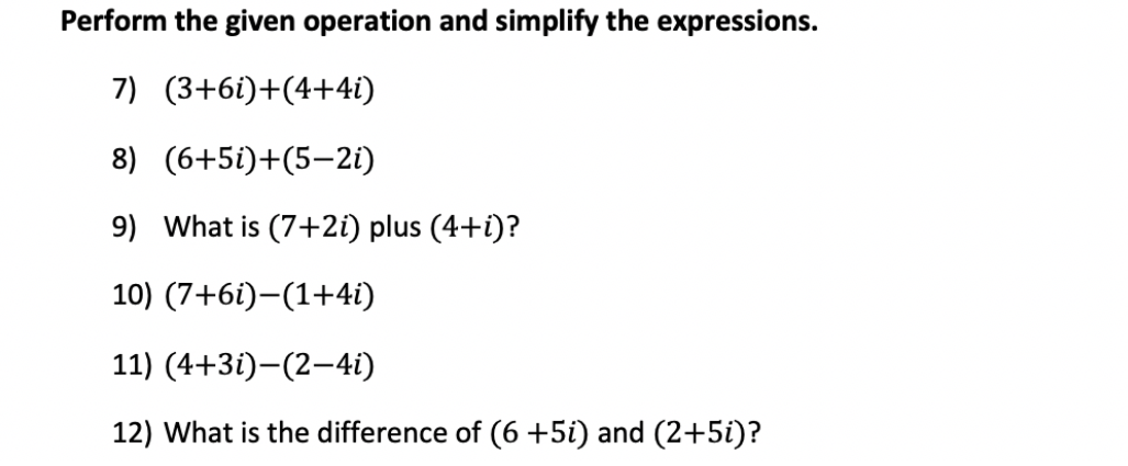 Simplify 5 2i 1 7i 12. 3 5 8i 2i 2 10i.