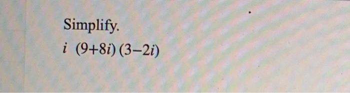 Solved Simplify I 9 8i 3 2i Simplify I 3 7i 3 4 Chegg Com