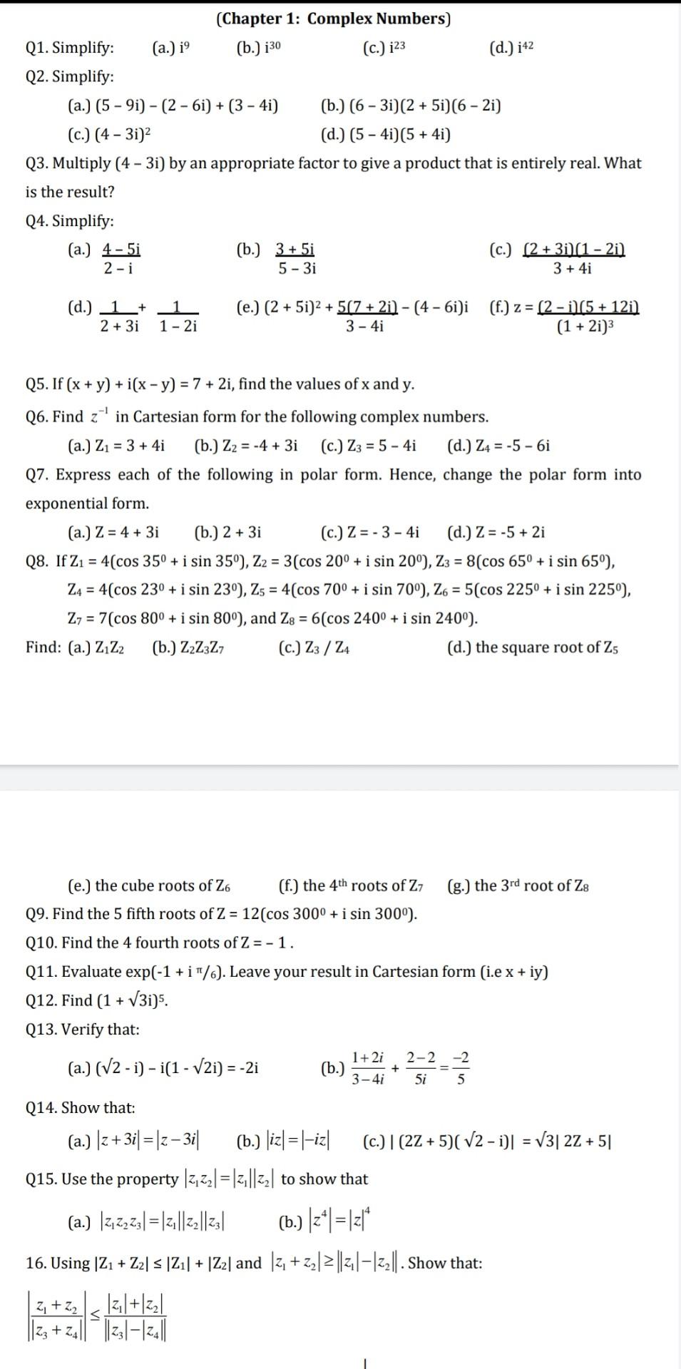 Solved Chapter 1 Complex Numbers Q1 Simplify A I Chegg Com